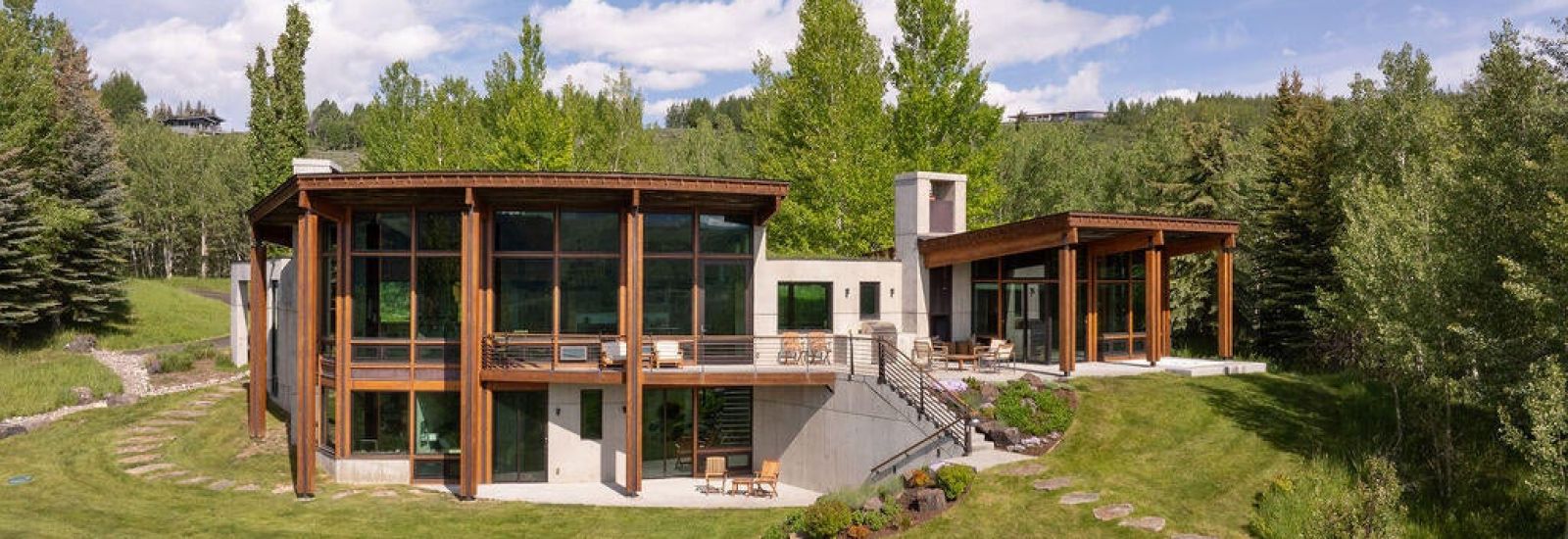 Discover your own modern hillside sanctuary in Jackson Hole, a stunning 4,777 sq ft masterpiece located in one of the area's most sought-after enclaves. This contemporary home features impressive design elements, including expansive glass walls that flood the space with natural light and provide views from every room. An open concept living area is seamlessly integrated with the gourmet kitchen and is perfect for entertaining. Retreat to one of three luxurious bedrooms, each with en-suite bathrooms and breathtaking views; the main level primary suite offers a private terrace with a built-in hot tub for stargazing soaks. The lower-level features two guest bedrooms with private patio access, a dedicated study, family room and a spectacular, glass-encased wine room. A terraced walkway leads