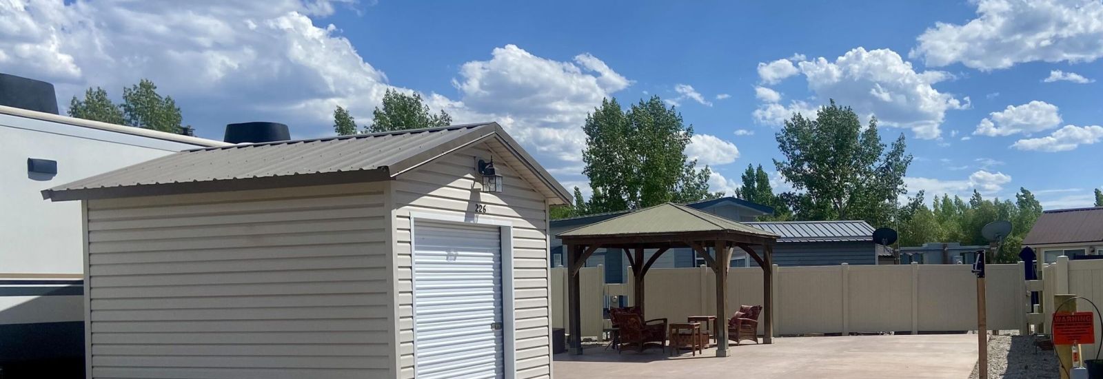 Full concrete lot with permanent gazebo to enjoy your Star Valley summer! Golf cart shed at the FRONT of the lot allows for easy access and added convenience. Shed is also equipped with electricity, full size washer and dryer included in the sale, and utility sink. All patio furniture included in the sale as well. Located in a prime position just east of the pickleball courts!