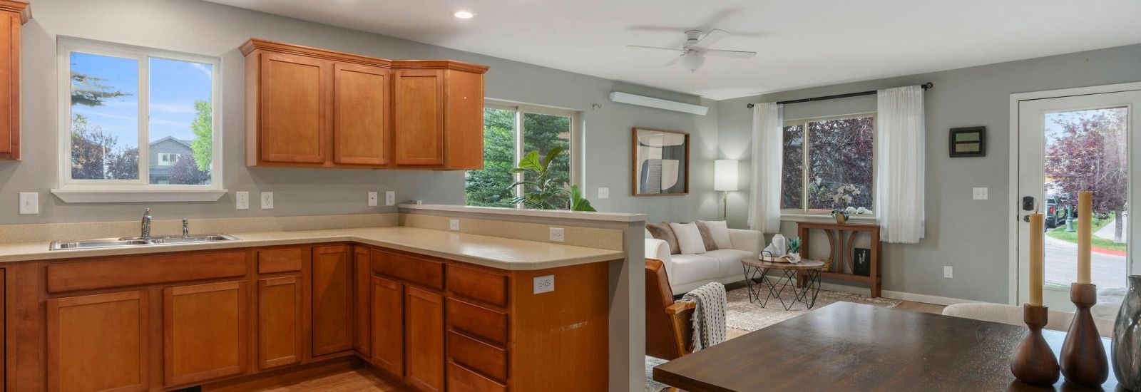 Located adjacent to the neighborhood playground and park, this 3-bedroom, 3-bathroom Cottonwood Flats townhome features more than 1,500 sq.ft. of living space, a generous kitchen, vaulted ceilings in the upstairs bedrooms, a spacious laundry room, a wraparound deck, and a 1-car garage with extra storage space and additional parking in the driveway. Cottonwood Flats offers a quiet neighborhood, proximate to schools, the pathway system and shopping.