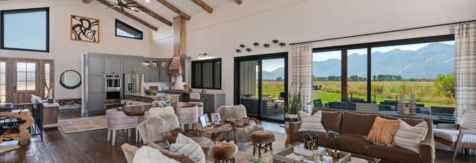 Experience the allure of mountain living in this stunning, custom designed home nestled on 2.25 acres in the picturesque Teton Meadow neighborhood. This remarkable property offers breathtaking vistas as it overlooks the 249-acre Trinity Ranch, a protected area under a permanent conservation easement, ensuring the preservation of its scenic views and wildlife migration paths.
