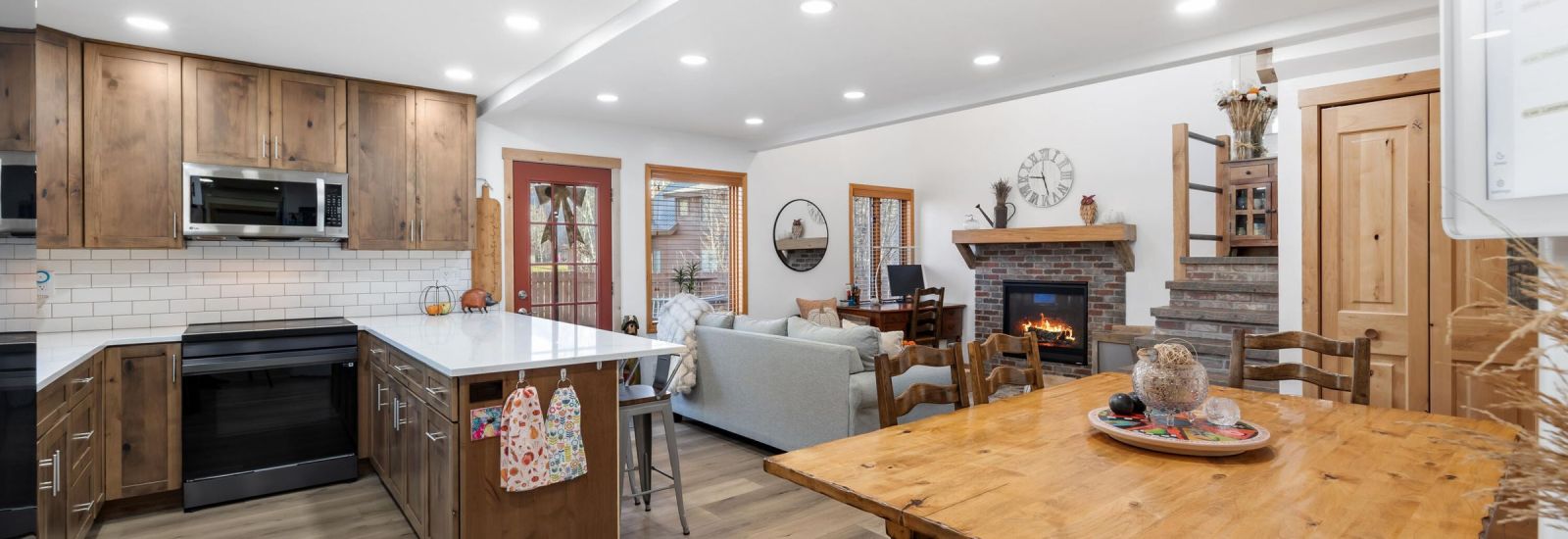 Beautifully updated Walden Pond twinhome in Rafter J, showcasing a new kitchen, refreshed flooring, and half bath. The expanded loft and three bedrooms offer generous living space, while the spacious, fenced backyard enhances the home's overall appeal. Ideally located in the quiet north end of Rafter J, this property is just a short walk from the Flat Creek walking trails and surrounding neighborhood open space, an inviting setting for those seeking comfort, convenience, and tranquility.