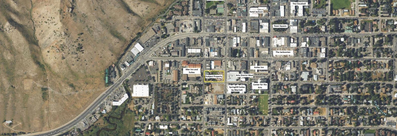 Rare redevelopment opportunity in the heart of Jackson. This offering includes six contiguous town lots totaling approximately 1.02 acres, located just west of the Center for the Arts and a few blocks south of Town Square. Zoned CR-1 and within the Lodging Overlay, the property allows for a wide range of residential, lodging, and mixed-use redevelopment options. CR-1 zoning supports higher-density, downtown-adjacent residential and mixed-use projects, while the Lodging Overlay permits short-term rentals and traditional lodging uses subject to approval. Assemblages of this size and flexibility are increasingly rare, making this a compelling opportunity for developers or investors seeking long-term value in a premier location.