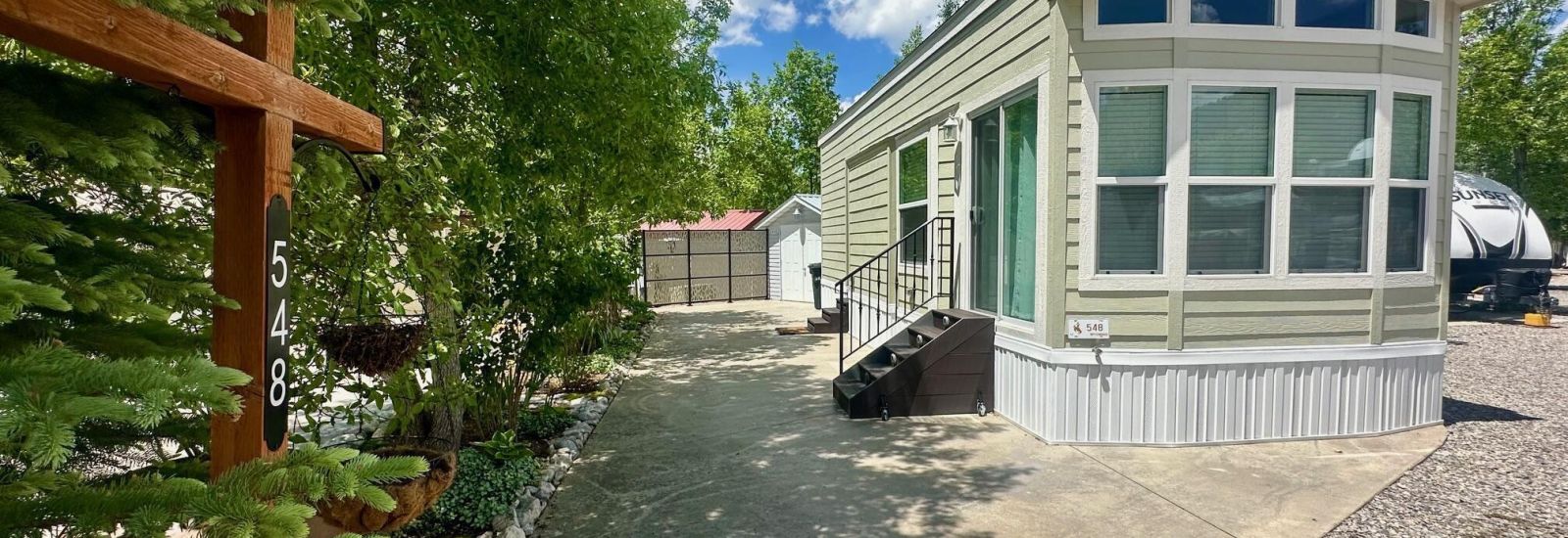 Beautifully maintained, immaculate 2022 CAVCO unit in the Star Valley Ranch Resort! This gorgeous home has A/C, and amazing finishes with full size stainless appliances, LVP flooring, and more. One outbuilding shed included with electrical and plumbing and new washer/dryer and refrigerator with ice maker. Back and side yards are fenced with vinyl fences and center island landscaped with sprinklers. Enjoy easy living in Star Valley with all the amenities the RV Park has to offer - including pool, pickleball, golf, shower facilities, and more!