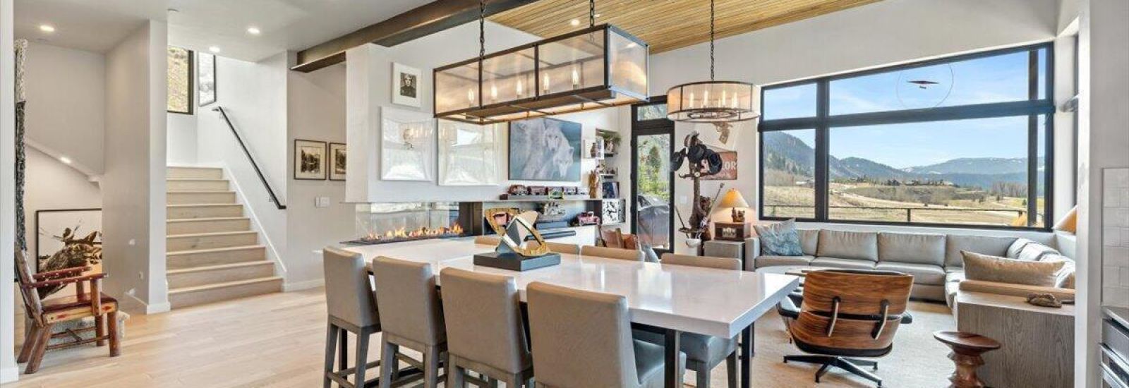 Mountain Modern Lodge Cabin at Snake River Sporting Club -- an elevated six-bedroom retreat offering exceptional space, privacy, and direct adjacency to Bridger-Teton National Forest. Perfectly sited to capture prime & expansive views of the Snake River Canyon and golf course, the property also enjoys convenient proximity--just steps--to the resort's newly completed hotel, featuring a gym, spa, and on-site dining. Designed with a contemporary, open-concept layout, the home showcases soaring ceilings, floor-to-ceiling glass, and thoughtfully designed living spaces that comfortably accommodate both family living and guest entertaining. Located within the resort zoning district, the property is eligible for short-term rentals, presenting a compelling opportunity for income generation.