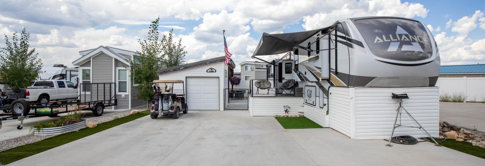 This is such a great setup with Farm Sun Shelter (216') designed to shed the snow in winter. The roof on the shelter and golf cart garage shed are bothStone Coated Light weight Steel Tile with 50 yr life. The Sun Shelter has an oversized fan on ceiling to keep you really cool! The TV comes out from ceiling so you can watch when you want and then store to protect when not watching. Comes with all the outdoor furniture, inflatable hot tub, bar-b-q on a concrete slab which is nice to keep area clean. The golf cart garage/shed is 120 sq ft has a sink in there with hot water for easy wash up there. The small fridge will stay. The RV is a 2021 which you can load up and head south when it starts to chill down here. It has all vinyl flooring and there are 4 slideouts, pantry, 1/2 bath & more!